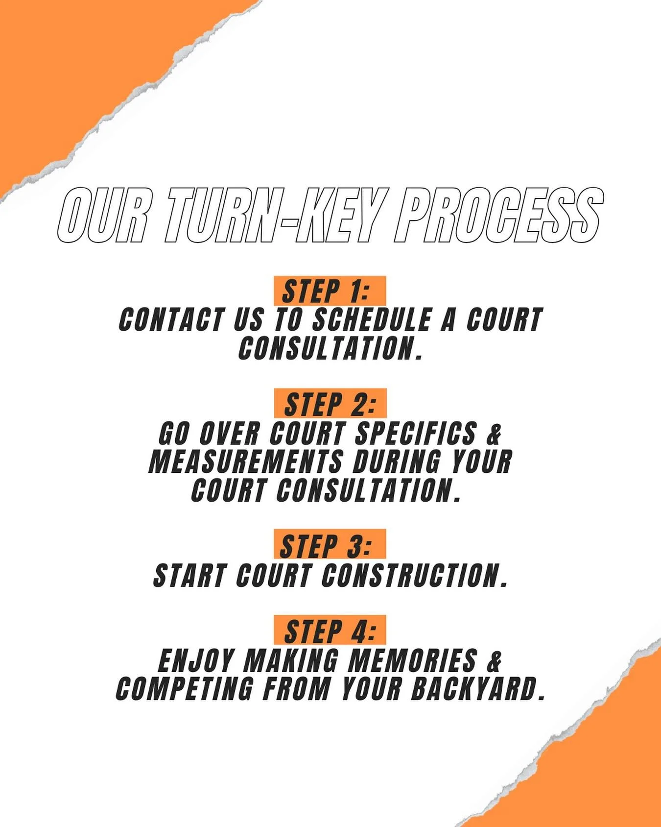 STEP 2: GO OVER COURT SPECIFICS & GET MEASUREMENTS DURING YOUR COURT CONSULTATION.